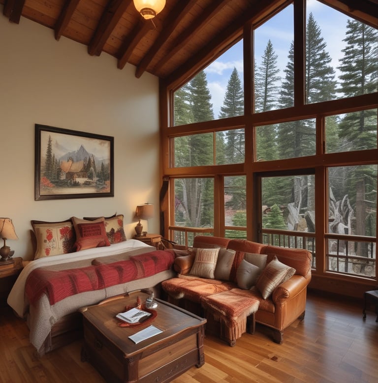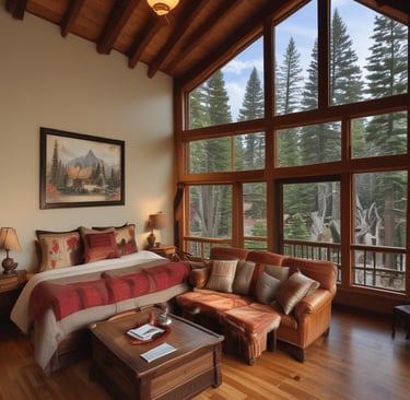 Indulge in the serene ambiance of our Mountain Retreat Room, designed for relaxation and comfort, complete with exquisite furnishings and stunning mountain vistas for a perfect getaway experience.